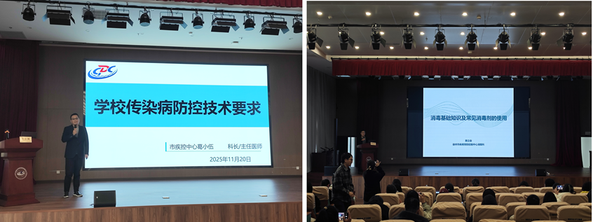 市疾控中心多位科室负责人与业务骨干也应邀授课:急性传染病防制科科长葛小伍讲解了校园重点传染病防控要求;消毒与媒介生物防制科副科长黄立业分享了常见消毒剂选择与校园消毒实施指南;职业与环境卫生科主管医师韩静岭围绕教师心理健康促进提出了针对性建议。
