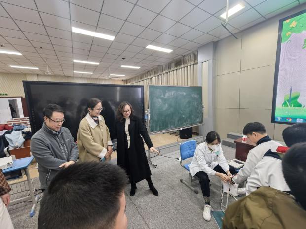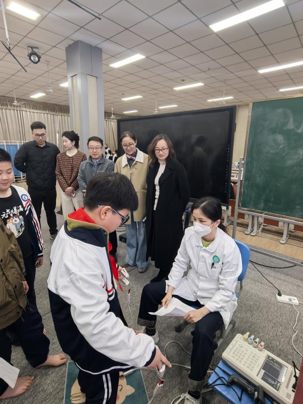 省专家组在监测点校通过实地查看学生体成分测量、身体形态测量、身体素质测量、生理机能检测以及肥胖相关问卷调查等操作现场,与学生及相关工作人员进行交流问询,全面了解肥胖干预项目实施开展情况。